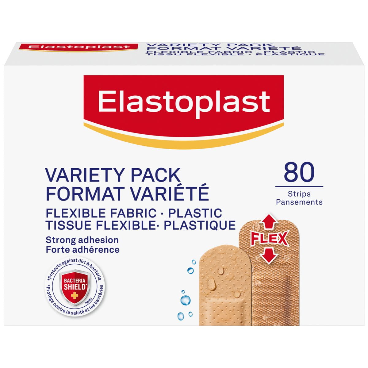 Elastoplast Variety Pack contains a convenient assortment of 80 plastic and fabric bandages. You’ll find a bandage for every scratch and scrape you encounter.